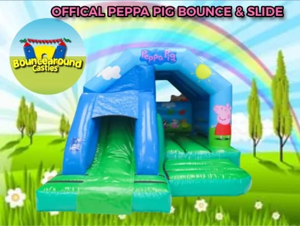 This bouncy castle is sure to be a hit with all the Peppa Pig fans! The walls and turrets are decorated with images of Peppa, George and the rest of the gang, and there's an inflatable slide as well as a bouncing area.