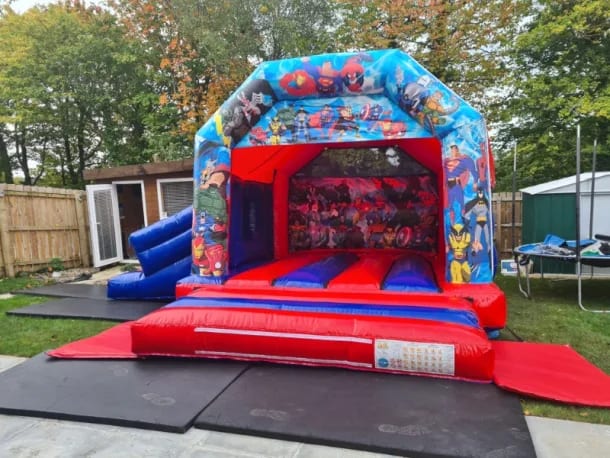 Reserve the Superhero Open Bouncy Castle With Slide for your date. We offer fast delivery and setup across Craigavon, Lurgan, Portadown and nearby areas. book online now