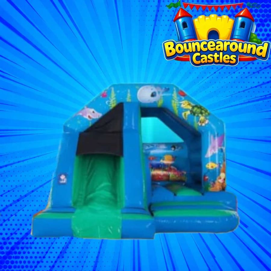 This bounce and slide combo inflatable features a bouncy castle area and an inflatable slide area, all with a cool ocean theme. It's a gorgeous inflatable that will sure to be the talk of whatever event you are hosting.