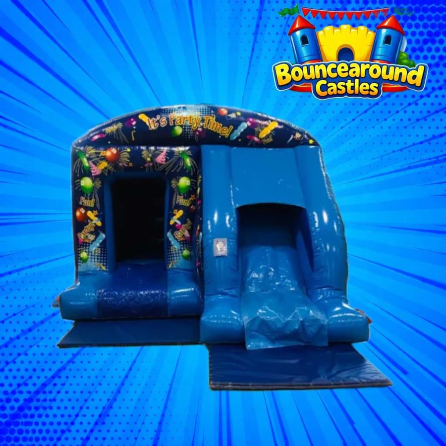 Looking for a bouncy castle for boys and girls ? Look no further; this party time theme inflatable is perfect for both thanks to its neutral design scheme. Whatever event you're hosting, the party bouncy castle with slide combo will fit in with the decor and should go down a hit.