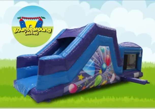 Bounce, slide and celebrate with Bouncearound Castles! Our Party Time Assault Course comes in at a thrilling 30ft long. The deep blue colour scheme with a vibrant balloons design makes this obstacle course the right choice for all tastes and preferences. Don't miss out on the excitement - book with us today!